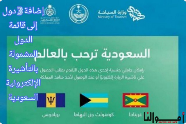 في خطوة جديدة تؤكد على النهج الاستراتيجي الذي تنتهجه المملكة العربية السعودية نحو تعزيز السياحة وتسهيل إجراءات الدخول للزوار الأجانب أعلنت وزارة السياحة السعودية عن انضمام مواطني ثلاث دول جديدة إلى قائمة المستفيدين من التأشيرة الإلكترونية، وهي كومنولث جزر البهاما، بربادوس، وغرينادا.