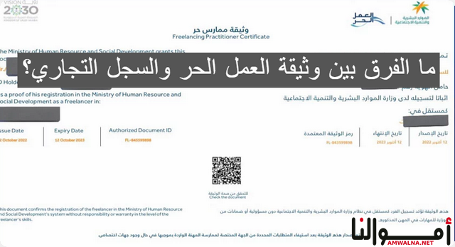 ما الفرق بين وثيقة العمل الحر والسجل التجاري؟